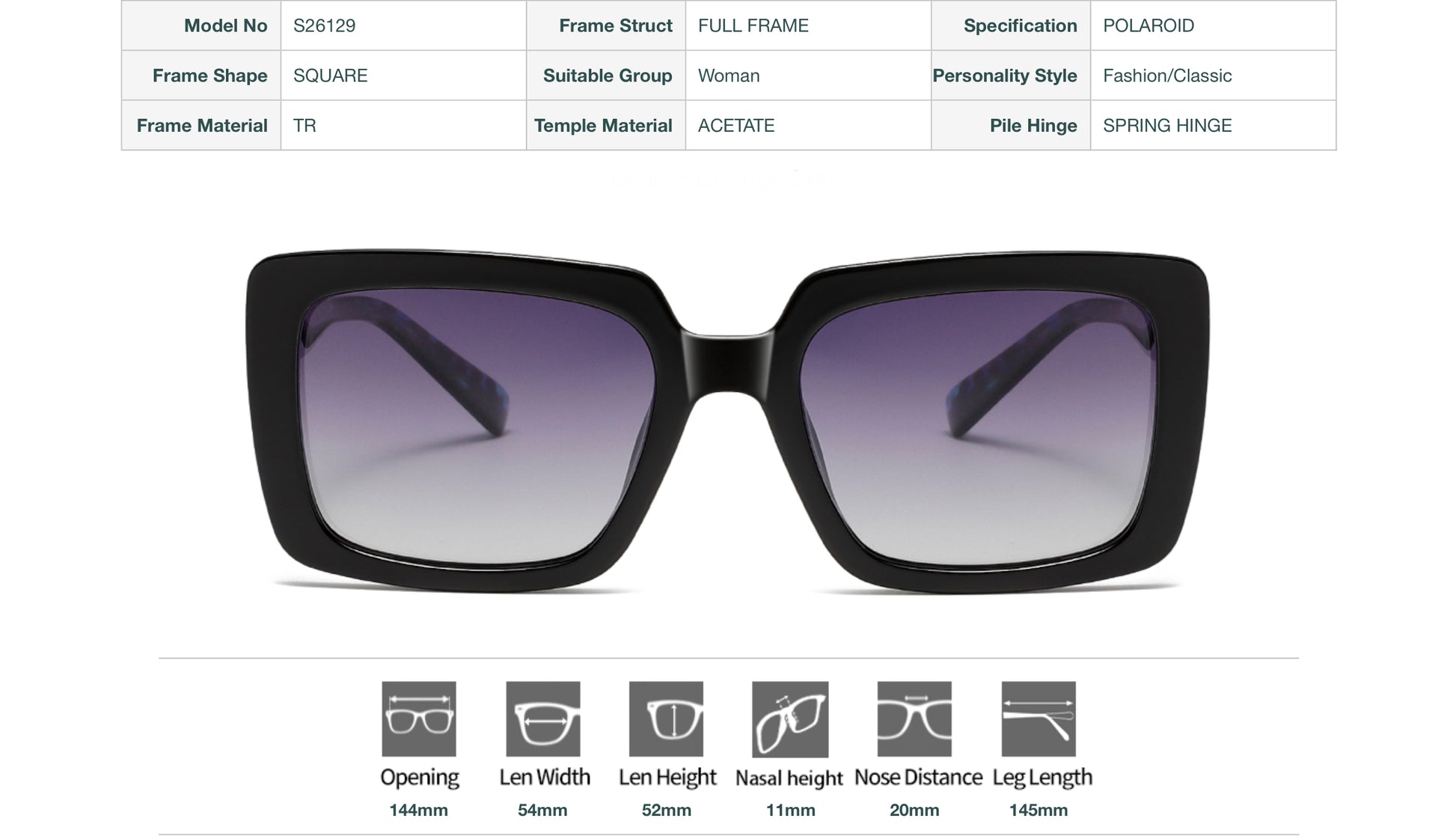 Model S26129 Polaroid Square Sunglasses - Fashion Classic with Acetate Temples