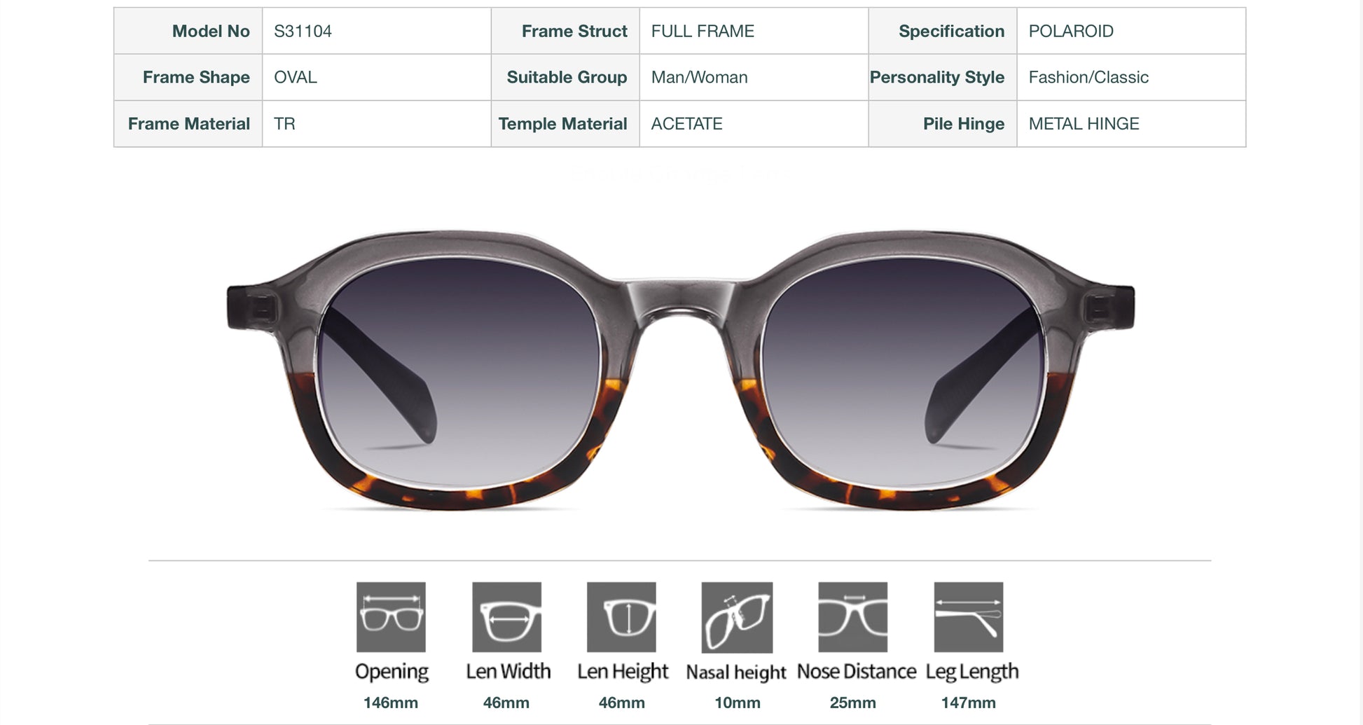 Model S31104 - Premium Oval Sunglasses